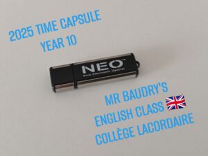 Les élèves de 3e C ont récemment achevé un projet original mené en cours d’anglais avec leur professeur M. Baudry : la création d’une capsule temporelle, inspirée d’une tradition ancrée dans le monde anglo-saxon. 🇬🇧🔐