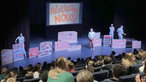 Afin de bien engager l’année, les élèves de 5e ont assisté au spectacle CLIMAX proposé par la compagnie “Zygomatic”.